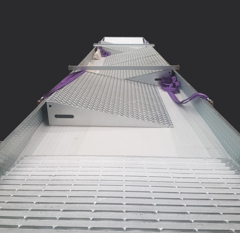 Les engins traversent le bassin sans s'arrêter, en passant sur un chemin de roulement galvanisé.